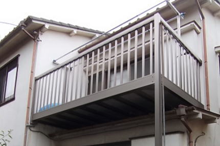 2階以上の戸外に張り出した、屋根が付いていない空間